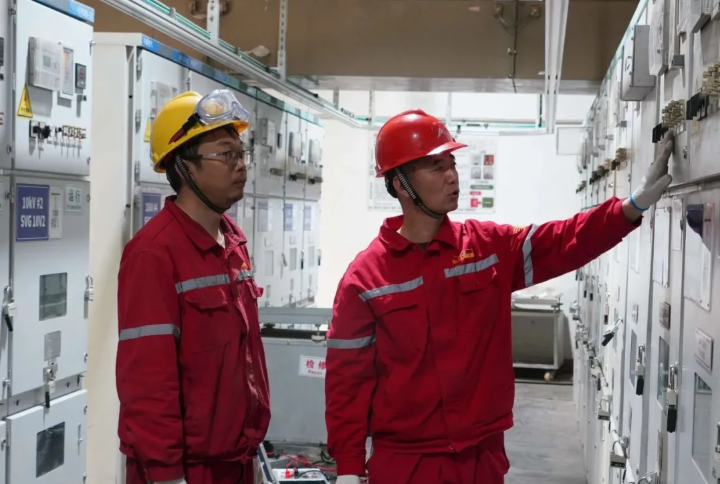 任杰带领团队人员进行电气设备巡检。伊吾县融媒体中心记者 高志华摄